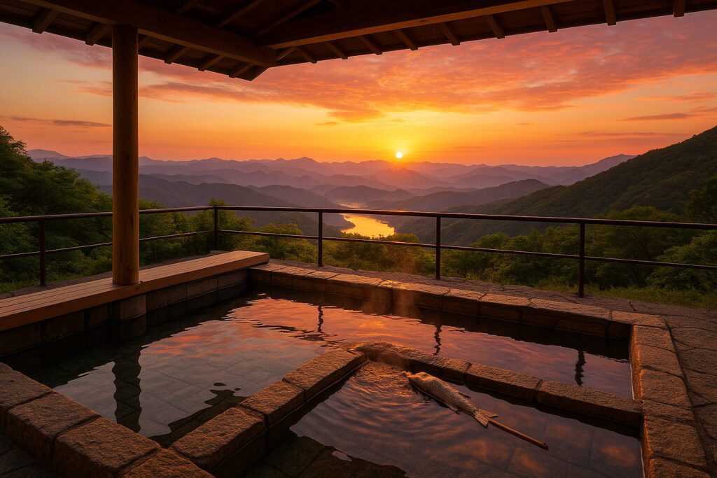 辺久町西部の高台に位置し、昼は遠くの山並み、夜は満天の星空を眺めながら入浴できる展望露天が自慢の温泉施設。源泉かけ流しの硫酸塩泉が肌をすべすべに整え、神経痛や関節痛の緩和にも効果的です。内湯にはラジウム鉱石を配し、じんわりと体を温める「鉱石浴」も楽しめます。敷地内の足湯スペースは無料開放され、湯上がりに地元のハーブティーを堪能することも。季節ごとに変わる夕焼けと夜景が、訪れる人々を非日常へ誘います。